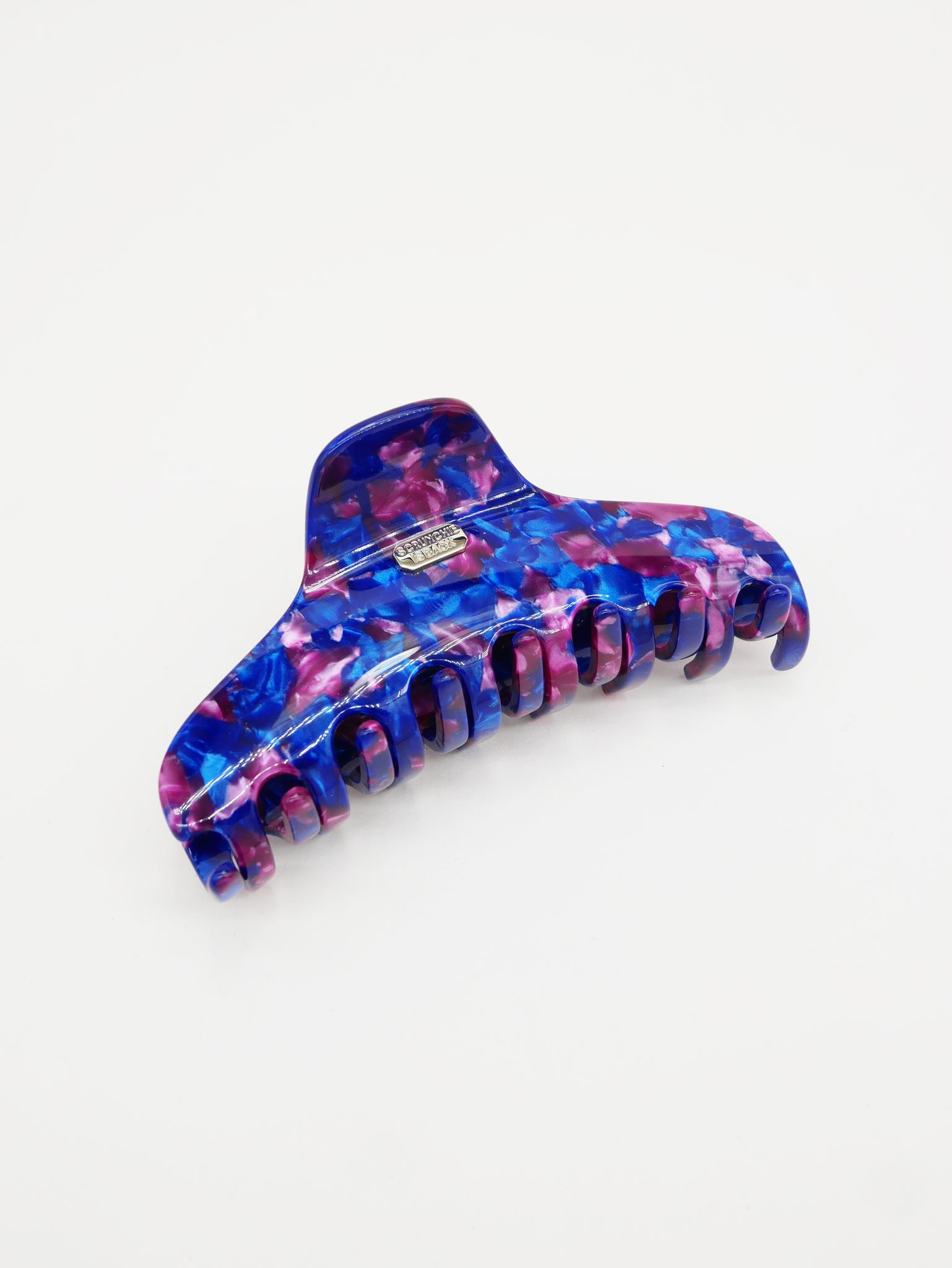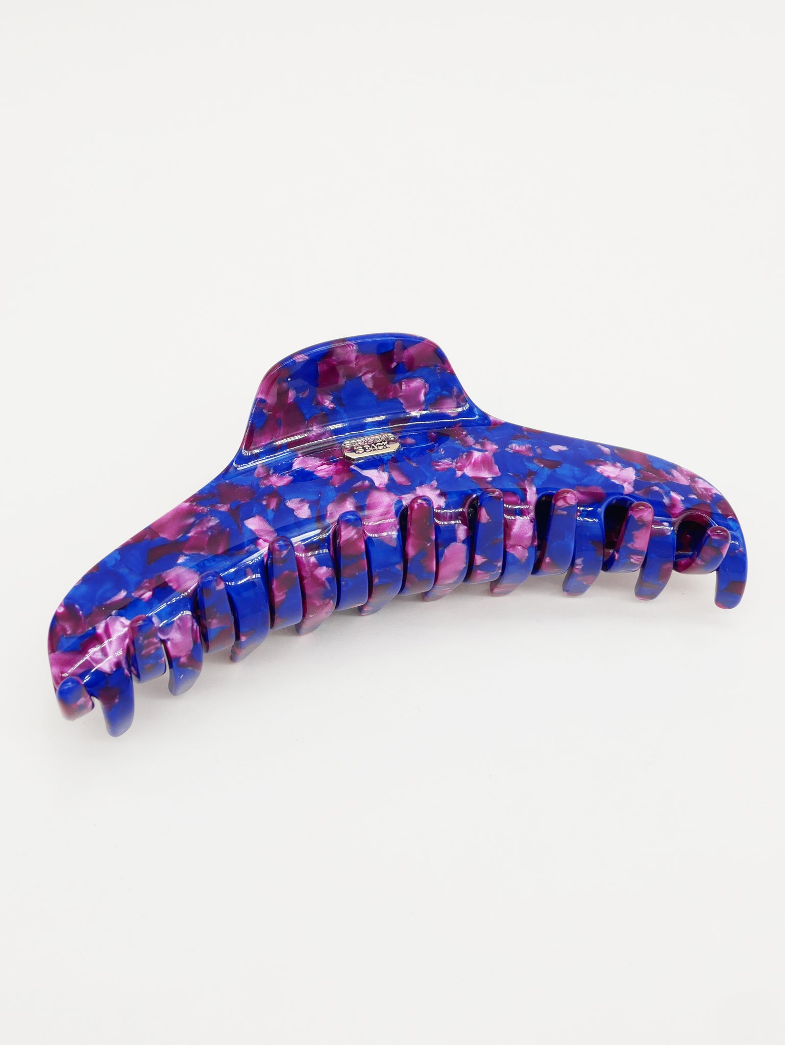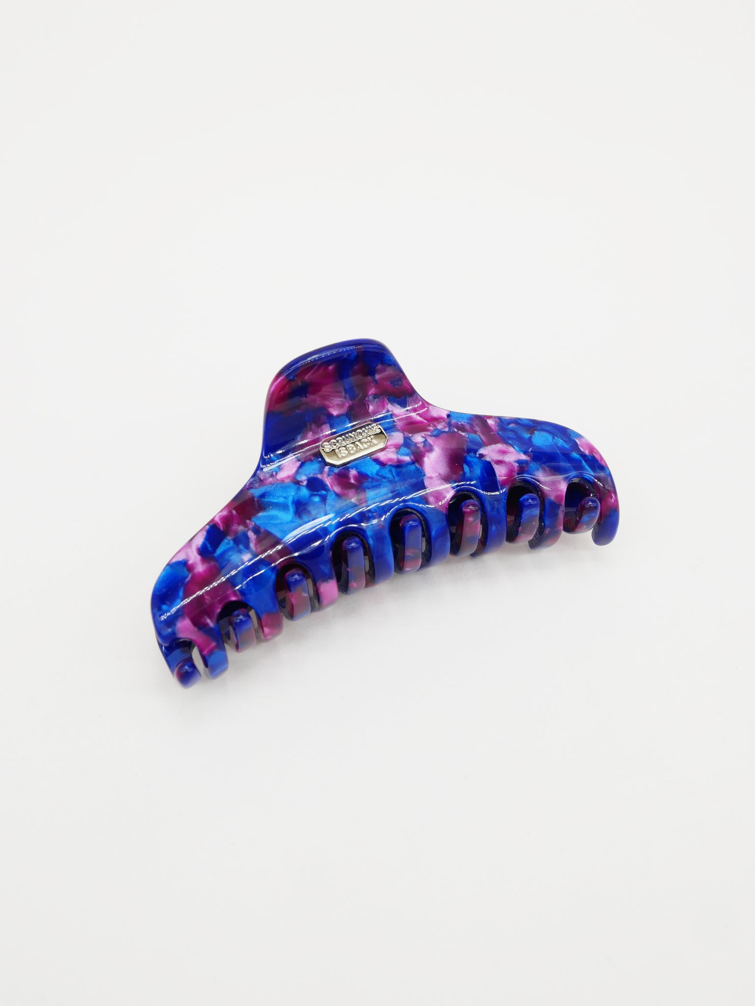 La pince multi est fabriquée à partir de granulés issus de chutes d'acétate. Le motif composé de nuances de couleurs et de différents degrés de transparence lui donne de la profondeur et un caractère unique.