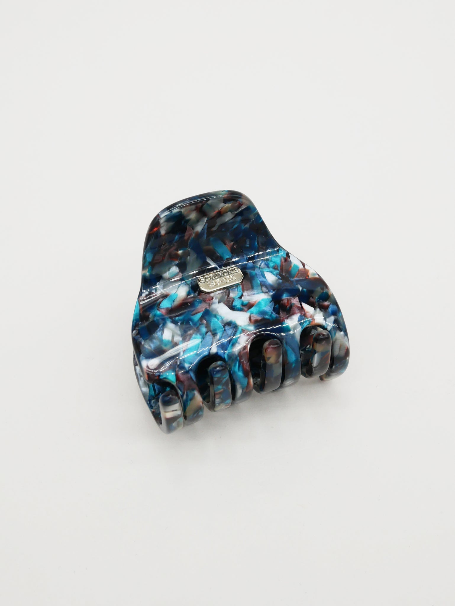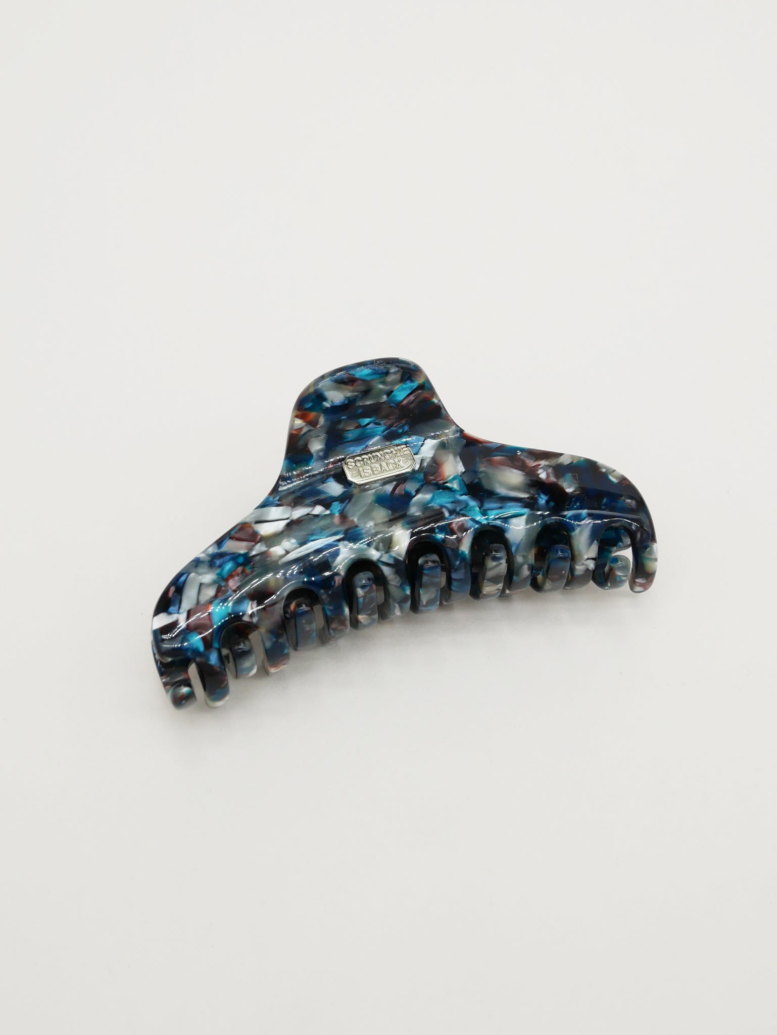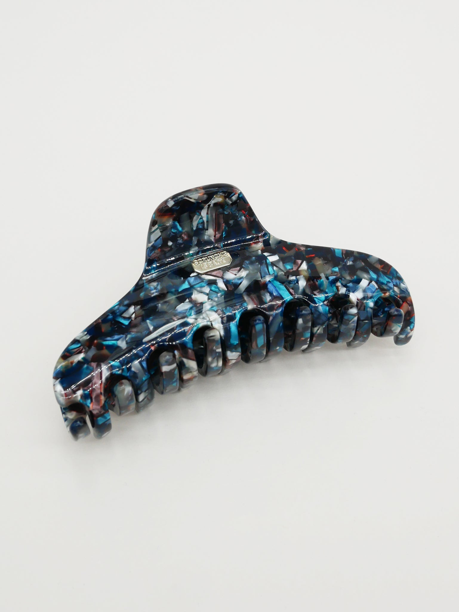 La pince multi est fabriquée à partir de granulés issus de chutes d'acétate. Le motif composé de nuances de couleurs et de différents degrés de transparence lui donne de la profondeur et un caractère unique.