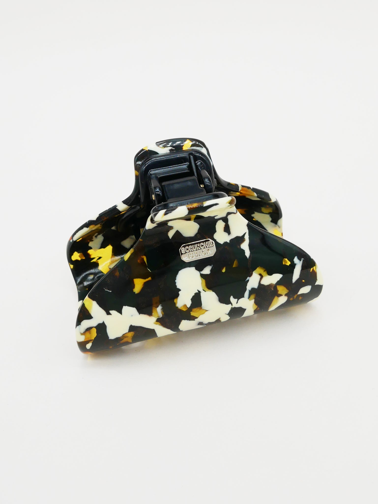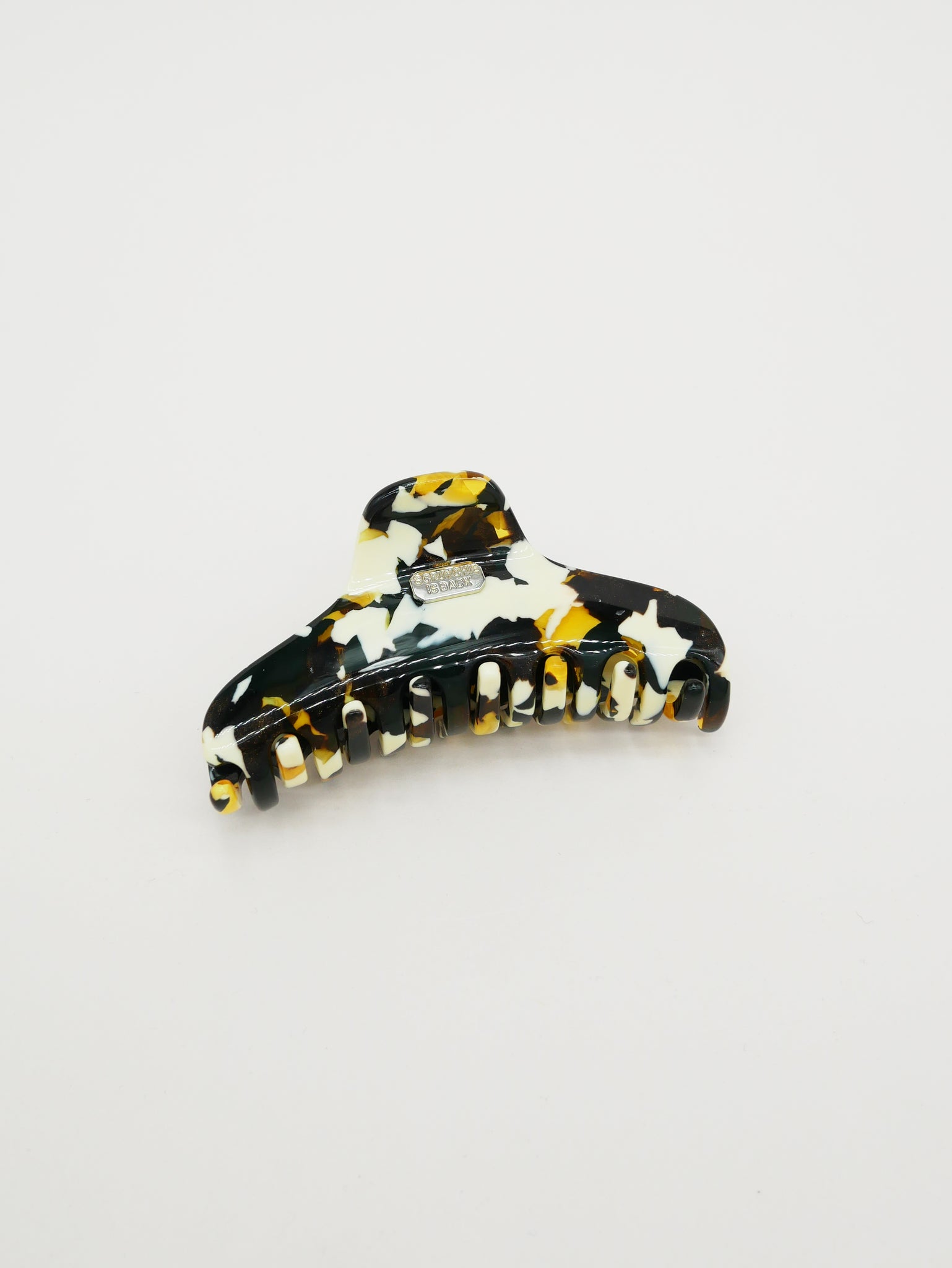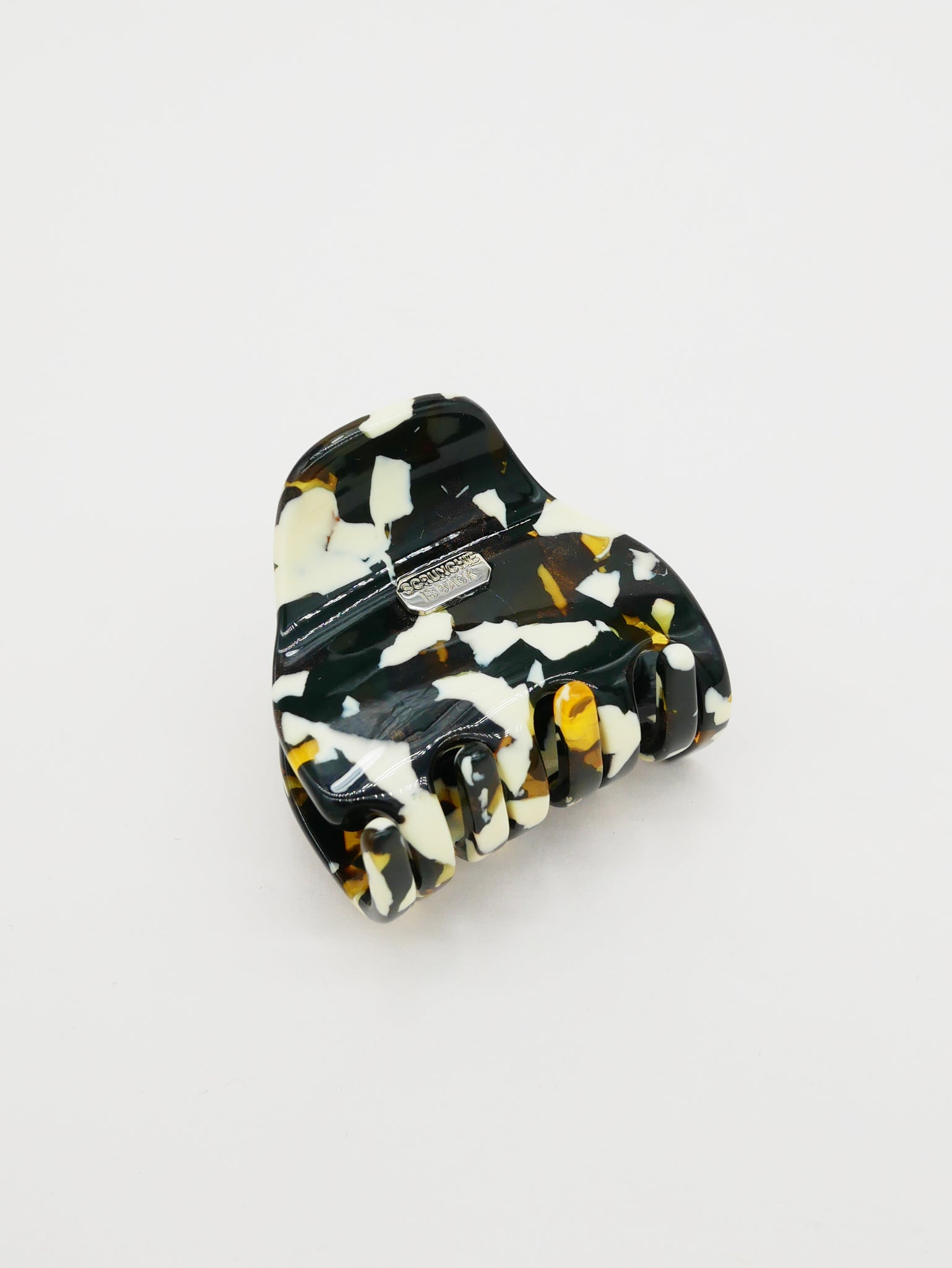 La pince multi est fabriquée à partir de granulés issus de chutes d'acétate. Le motif composé de nuances de couleurs et de différents degrés de transparence lui donne de la profondeur et un caractère unique.