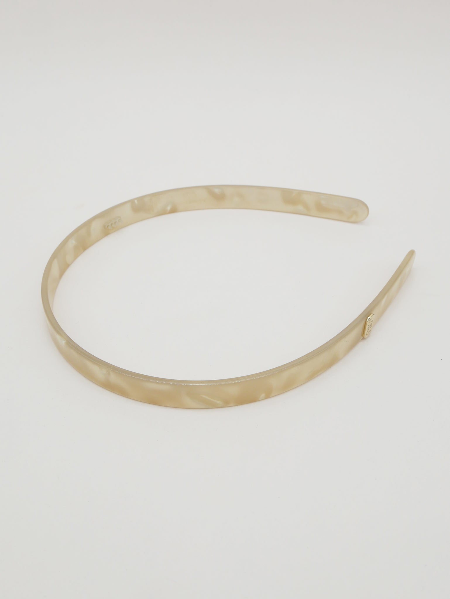 Serre-tête confectionnée en acétate de cellulose de haute qualité, un matériau noble reconnu pour sa légèreté, sa résistance et sa brillance naturelle. Entièrement fabriquée en France, dans les ateliers d’Oyonnax – berceau historique de la lunetterie et de l’accessoire capillaire – elle incarne le savoir-faire artisanal français.